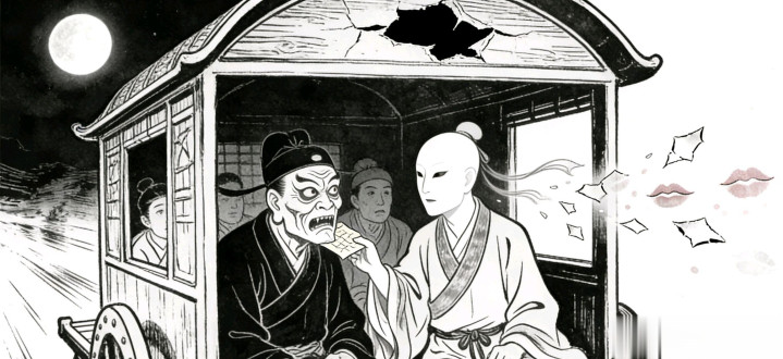 一日,有几个客商合股,雇了一辆夜行车,要去城外的驿站。彼时夜色沉重,月色被乌云遮住,车厢里阴沉一派,客商们驰驱了一日,都窘态不胜,靠着车厢壁蒙头转向。